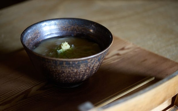酒粕と白味噌ベースの粕味噌うどん。昼はうどんと信濃町の自然栽培の野菜で作る季節の料理、菓子の3品で2,500円~。夜は季節のおまかせ料理、約10品で11,000円