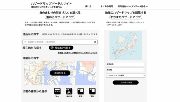 「重ねるハザードマップ」では、住所・現在地・地図から、災害リスクを調べることができる 出典:国土交通省「ハザードマップポータルサイト」
