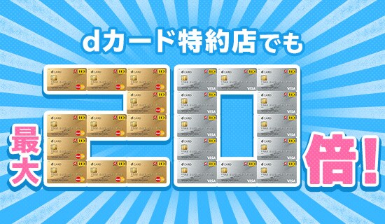 「dカード特約店」でのdカード利用金額を合算し、5000円利用を一口として、抽選で100名に決済ポイントの20倍、500名に決済ポイントの10倍、1000名に決済ポイントの5倍をプレゼント! dカードGOLDなら、5000円利用で二口になり当選確率が2倍に!(8月31日まで)