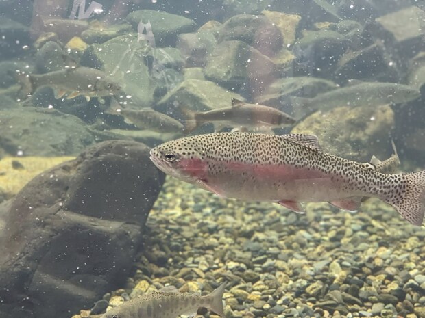 激流も再現されていて、上流から落ちてくる餌を狙うオショロコマたちが力強く泳いでいます。