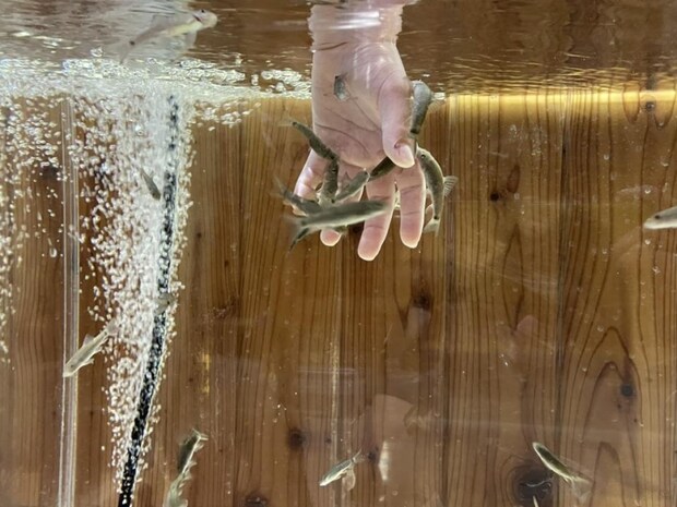 ドクターフィッシュは特に人気で、古い角質を食べてくれる際の少しくすぐったい感触に子供も大人も大興奮!