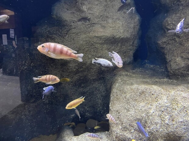 水槽の水には温泉水が利用されていて、日本の魚とは異なった独特な色や形をした熱帯の淡水魚を見学できます。