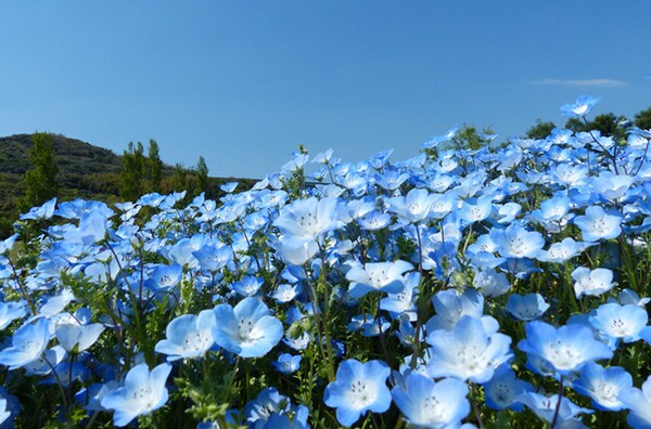 ネモフィラの花言葉は「可憐、あなたを許す」。青い絶景を目にすれば、童心に。細かいことも、気にならなくなるのかもしれませんね。