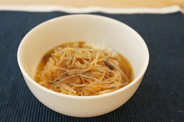 …残念ながら高級食材のふかひれはちょっとしか入っていないけど、それでも十分。このラインナップのなかで唯一味付けが濃すぎず、さらりといただける優しい味わい。食欲がない日や、二日酔いのパパにもオススメできそう。