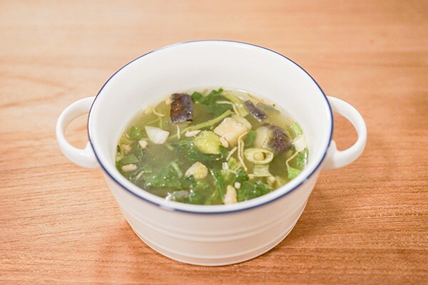 …そして1位に輝いたのは「オクラ入りねばねば野菜のスープ」。正直、2位以下とは比べものにならないほどのおいしさ。魚介エキスで旨みのあるスープは、柚子や生姜で香り豊かな味わいに仕立てられています。さらに、オクラ、モロヘイヤ、卵、鶏肉、わかめといった具材が“たっぷり”と入っているから食べ応えも十分。味、具材ともにバランスがよく、“食べるスープ”としての満足度はとても高いです。