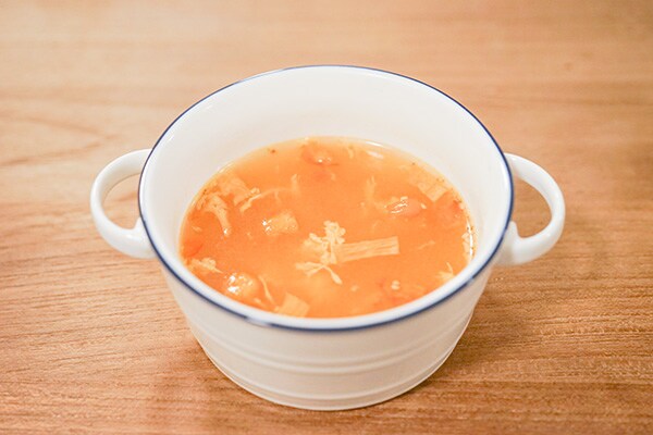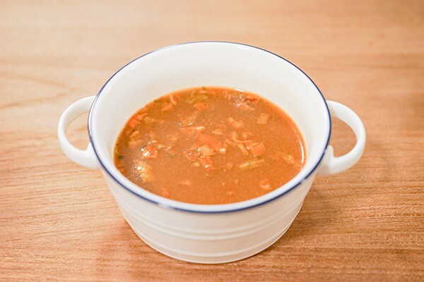 …キャベツ、にんじん、玉ねぎなど野菜の甘みを生かしたトマトベースのスープ