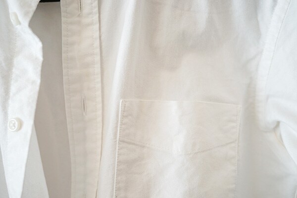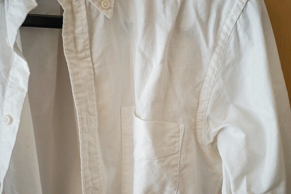 まずは、「ティファール」でオックスフォードシャツに試してみると、想像していたよりも意外とスチームに勢いがなくてビックリ。じんわりと出てくるスチームをシャツにあてて、衣類スチーマーをゆっくりと上下左右に動かしてみたもののシワが伸びている様子はほぼありません…。