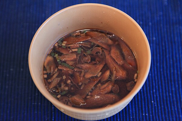 今回比較したなかで、最も高額の「八丁味噌のお味噌汁」。見た目は色が濃く「味も濃いのかな?」と思いきや、意外とそうでもなく塩分も控えめでした。たっぷりと入ったごぼうは食感がシャキシャキしておいしいのですが、なんだか後味に苦みのようなものを感じ、しかもだしの風味もあまりなく…。もしかしたらこれが本格的な味わいなのかもしれませんが、普段の生活では出番が少なそうです。