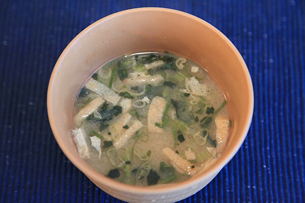 ほうれん草のほか、油揚げやねぎもあり、一つひとつは小さめですが、たくさん入っていて◎。白味噌のまろやかでやさしい味わいも、朝にピッタリです。ただし、ほうれん草がメインのはずなのにあまり存在感がないので、みそ汁としては高ポイントですが、“ほうれん草の”みそ汁をなると少し残念な印象です。