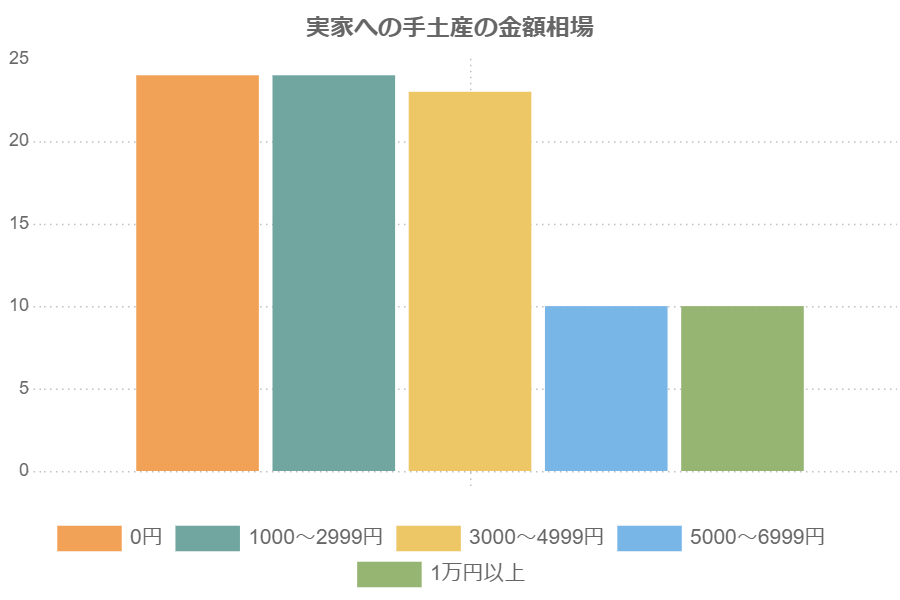 1位は「0円」。もちろん買う・買わないは個人の自由であり、どちらがいいかということではないのだけれど、筆者は“実家に手土産を買って行く派”なので、何も買わない人がおよそ4人に1人と、意外と多いことに驚きました。