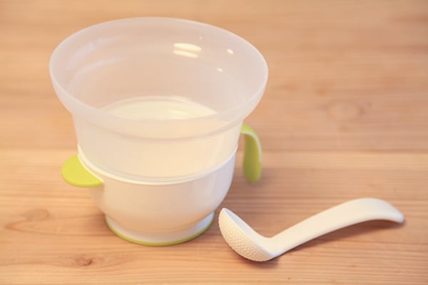 炊いた白米を電子レンジで加熱することで、おかゆを作ることができる製品。本体の内側はすり鉢のようになっており、付属のスプーンもおかゆを潰しやすい構造になっています。また、電子レンジから取り出したら、そのまま食器としても使えるスグレモノです。