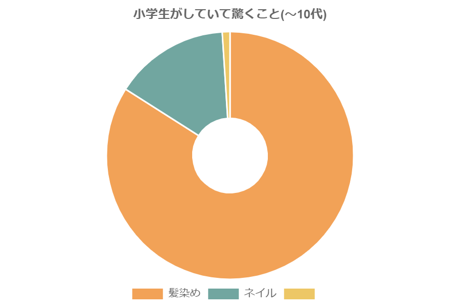 同アンケートでは、その理由までは聞いていないのですが、髪の毛は見た目の第一印象で目につきやすいということも理由のひとつかもしれませんね。また、スプレーやカラーワックスなど、一時的に髪に色を付けるアイテムもあるので一概にはいえませんが、ネイルのほうがシールやチップなどでより手軽にできる印象があるし、子ども用のマニキュアなどもあるのでそうしたこともこの結果に表れていそうです。