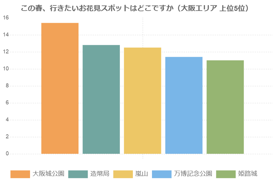 どれも僅差といえそうですが、1位は、「上野恩賜公園」。東京を代表する桜の名所のひとつですよね。公園内には、800個ものぼんぼりが灯されるので、夜桜見物にもおすすめです!