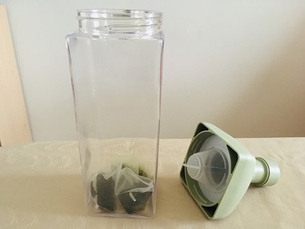 日本茶は片付けが簡単なティーバッグがおすすめ。水出し用のティーバッグは1個に10gほどの茶葉が入っているものが多く、便利です。ティーバッグ使用ならボトル付属のフィルターは必要ないので、外しておいても構いません。茶種は、煎茶やほうじ茶がおすすめです。