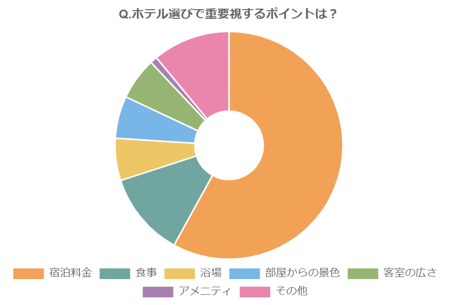 人それぞれ、こだわりポイントは違って当然。だけど、多くの人は宿泊料金を重要視しているようです。あなたは何を重要視しますか?