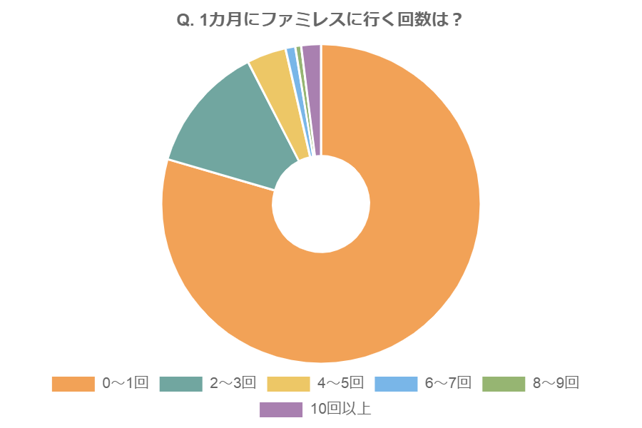 この結果を見ると、月に3回くらいまでが多数派のよう。ちなみに筆者は、2019年4月だけで3回だったので、多くの方々と同じくらいでした。あなたはどれくらいの頻度で、ファミレスに行きますか?