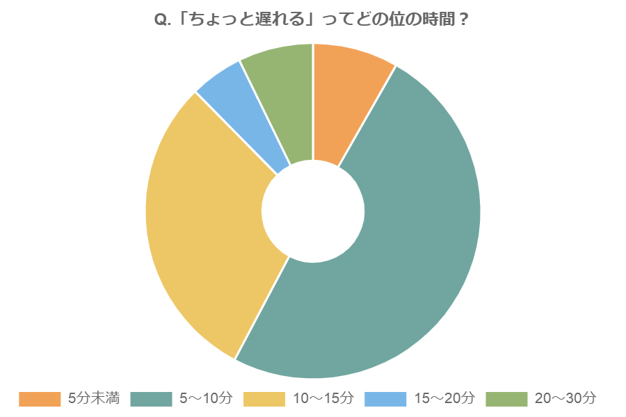 7%とそんなに多くはありませんが、「20~30分」が4位に。“ちょっと”にしては長すぎる感も否めませんが、待つ立場なら辛抱強いし、待たせる立場なら図々しい?