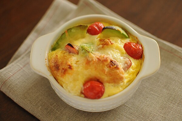 ●深めの器だと卵液が固まりづらくなるため、浅めの器を使うといいでしょう。トースターの熱量によって焼き上がりまでの時間が異なりますので、中が生焼けの場合は時間を調整してください。
