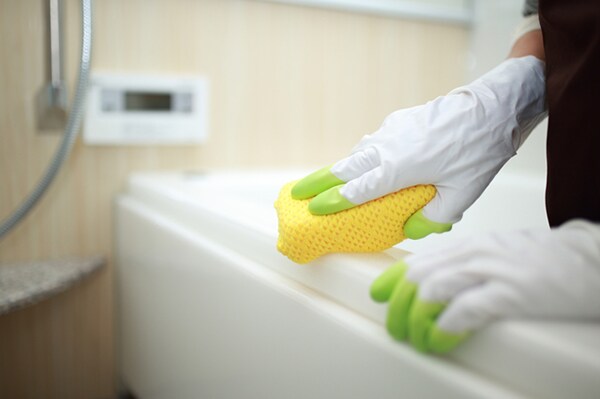 掃除をしなきゃと思いつつ、ついつい後回しになってしまうバスルーム。カビや水アカが気になる場所。ラップを使えば、短時間&放っておいてもOKなので、空いた時間が別の作業に使えます。また、最後には必ず水をふき取ると良いでしょう。