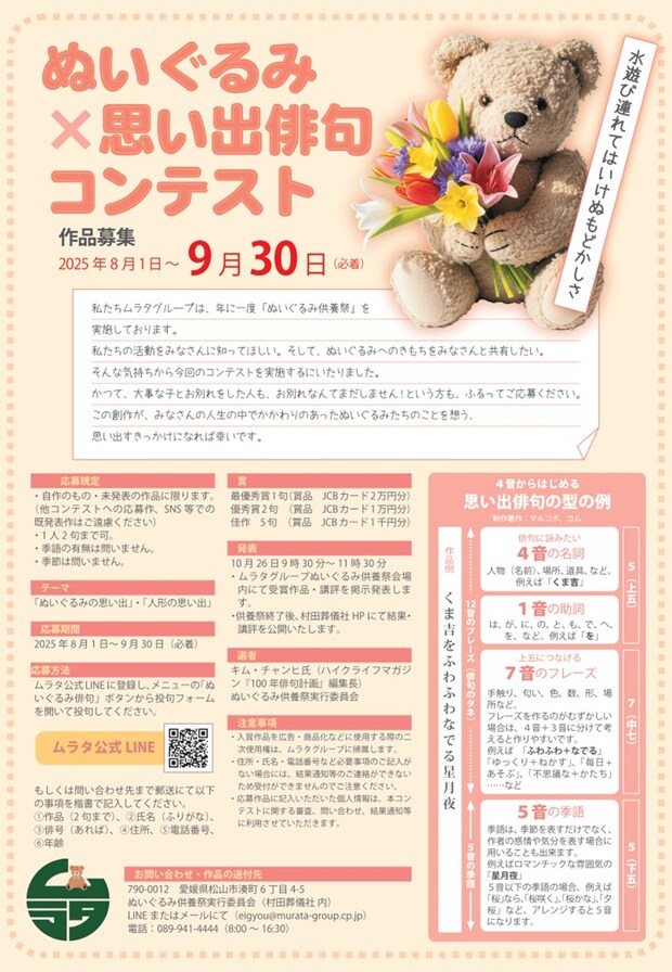 俳句で紡ぐ、ぬいぐるみとの記憶。締切は9月30日