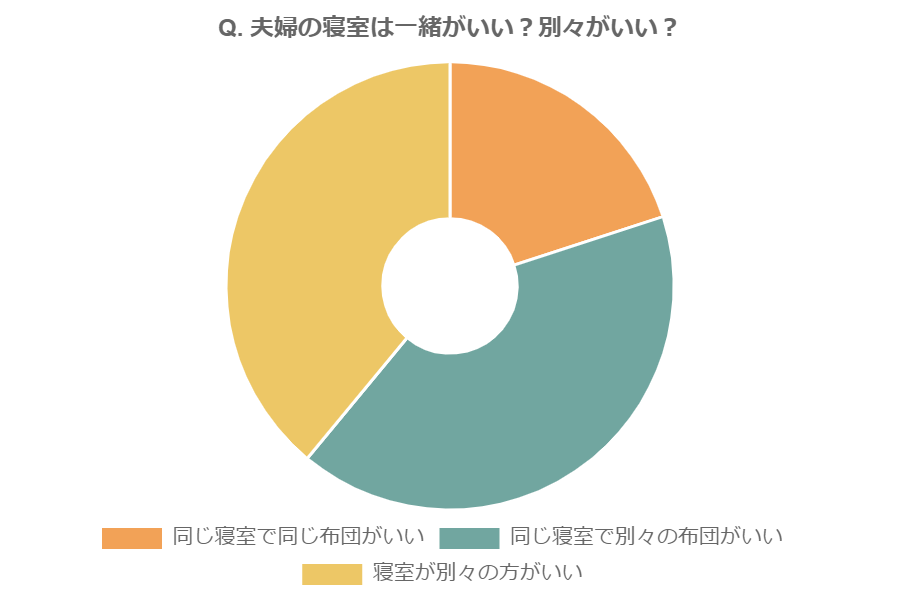 3位は、20%獲得の「同じ寝室で同じ布団がいい」。3項目中最下位ではあるものの、5人にひとりは同じ布団で寝ることを望んでいるというのは、少ないというわけではなさそうです。