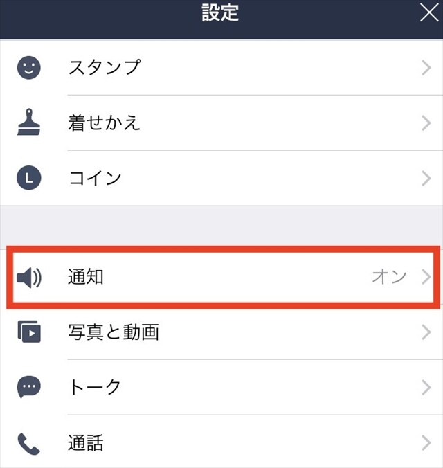 表示される項目一覧の中から「通知」を選択しよう。