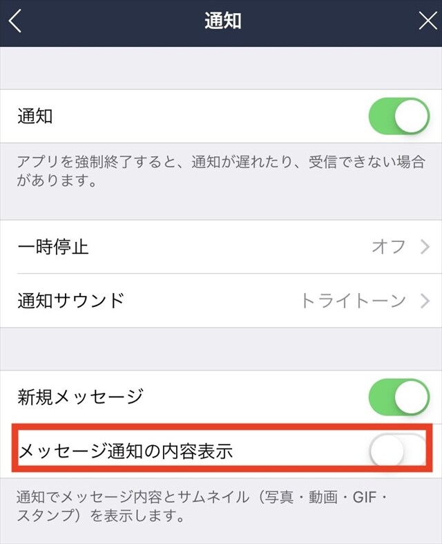 LINEのプッシュ通知、内容を非表示にする方法