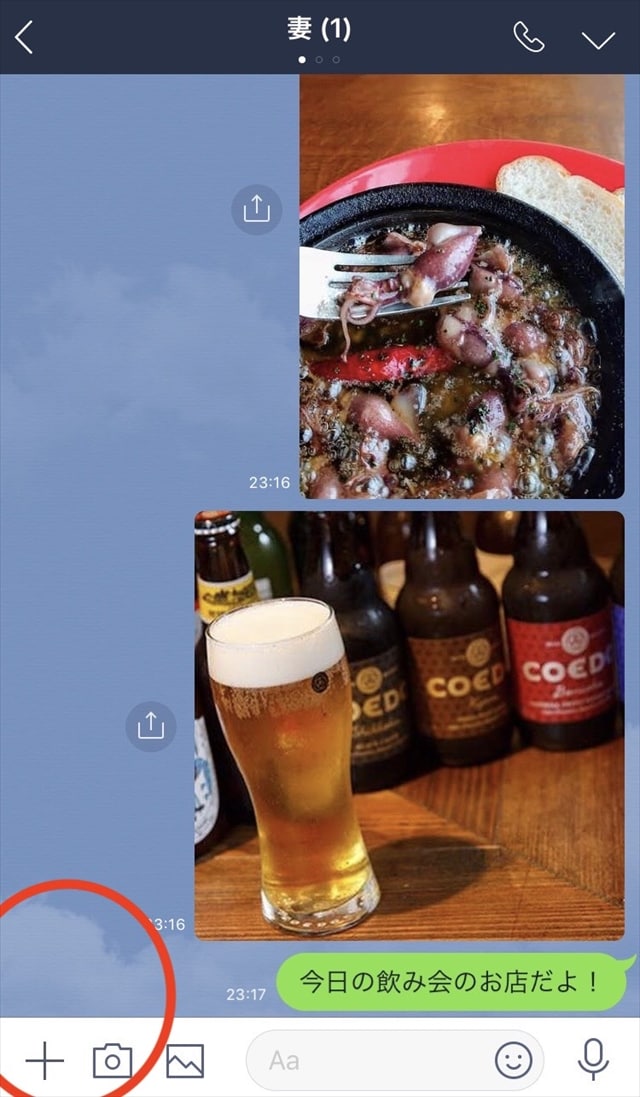 贈り方はとても簡単。まずは、プレゼントを贈りたい相手とのトーク画面を開き、左下の「+」をタップしよう。