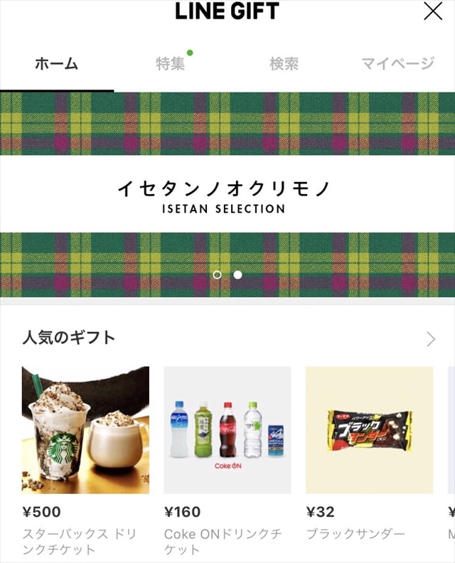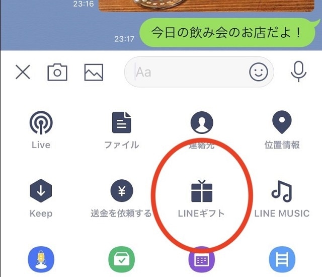 いくつか出てくる項目のなかから「LINEギフト」を選択。