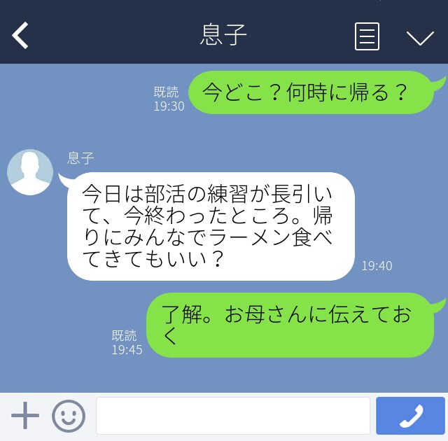 そんな感じで家族の時間がバラバラなので、今やLINEは欠かせない連絡手段になっています。夫もときどき子どもたちとLINEしています。“いつ帰るの?”とか“夕飯いるのか?”みたいな簡単な内容が多いみたいですけど、会えない分そこで会話しているようです。」