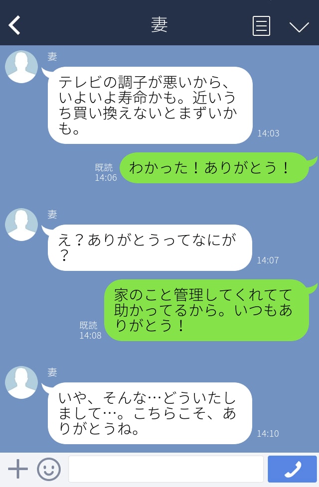 ◼いつもより長文の場合など、妻が夫の返事を期待していそうな場合は、“了解”の一言で済ませてはいけない。