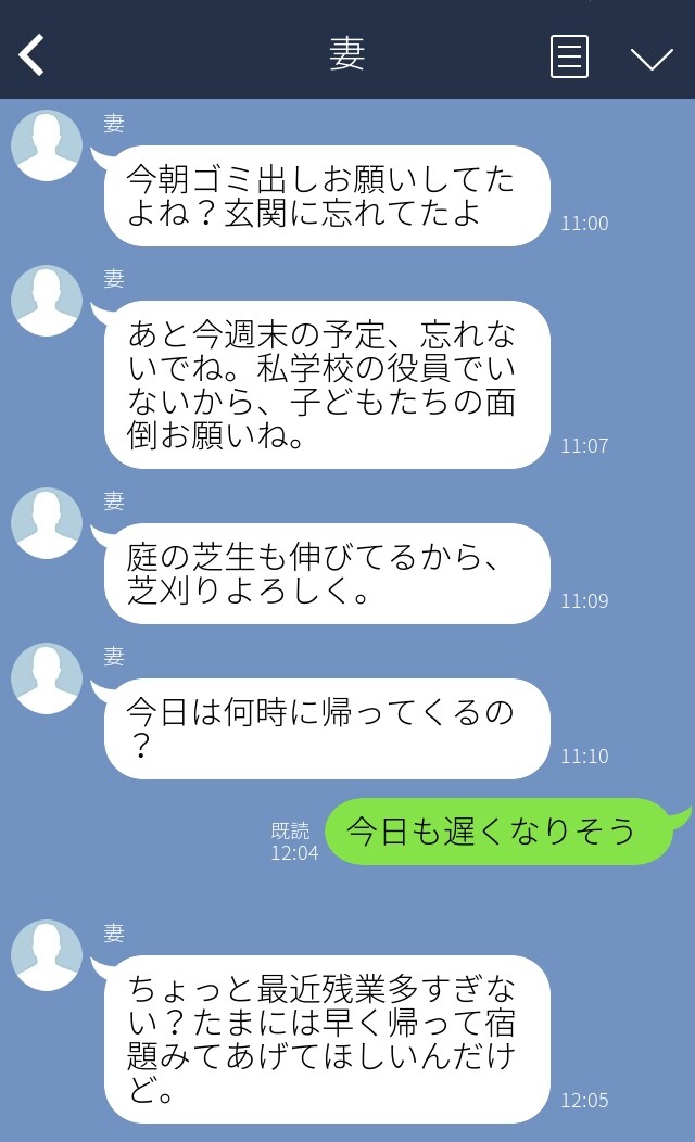もしもこんなLINEが送られてきたら、“おいおい、こっちは忙しいんだから勘弁してくれよ…”とあなたは思うかもしれない。しかし妻が遠慮なくあれこれ要望を言ってくるのは、夫の仕事の事情を知らないからなのだ。