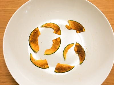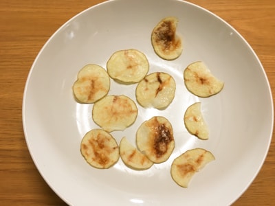 こちらもジャガイモと同じ手順で作ることができました。レンジから取り出した瞬間から、お部屋にフワッとした甘い香りが広がります。食感はとてもサクサクしており、カボチャの自然な甘味がクセになります! 少しでも焦げ付くと苦みを感じやすいので、慎重に加熱することをオススメします。