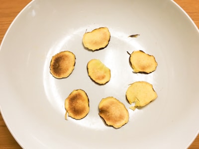ジャガイモと全く同じ手順で、サツマイモのチップスも作ってみました。実際に食べてみたところ、サツマイモ本来の甘みを感じることができ、歯ごたえもあるので、少量で満腹感を得ることができます。ダイエットにピッタリのおやつですね!