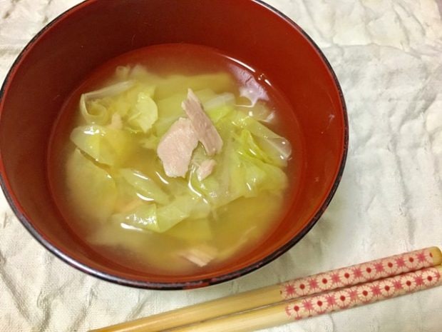 ■【スープ1】包丁いらず! 「キャベツとツナのおみそ汁」