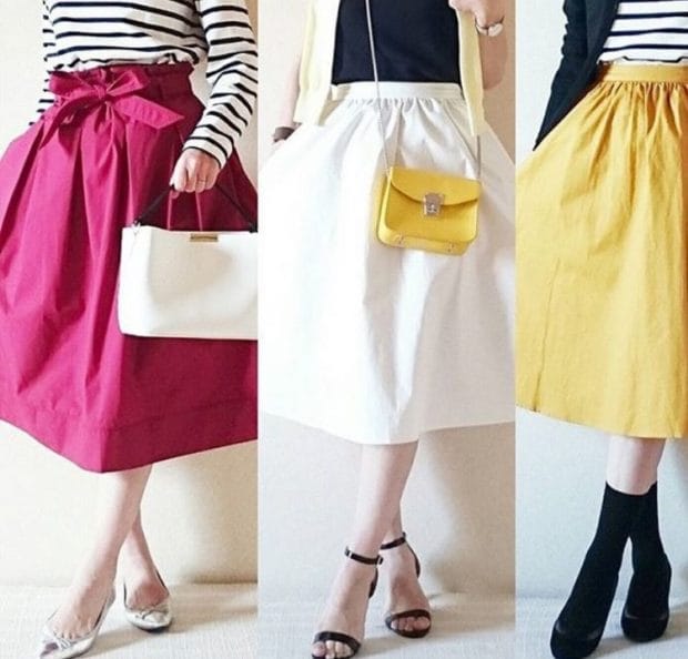カラースカートに合わせると、より今年らしくなりますね! サンダルや靴下とのベストな相性を見つけるのも楽しい。