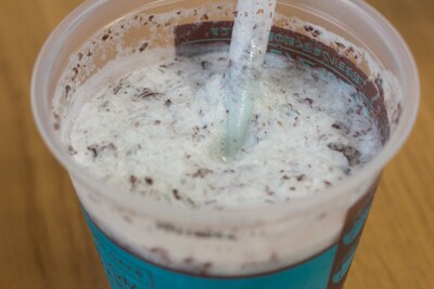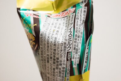 ミントとチョコの味わいに比率をつけるならば「7:3」といったところ。アイス部分に含まれているチップもあいまって、チョコの味わいが強く感じられました。それと同じくらいミルキーであり、ミントの風味は控えめな印象です。