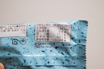 カロリーは1本あたり198kcal。上記の「クランキー」に比べ、カロリーが控えめなのもポイントです。