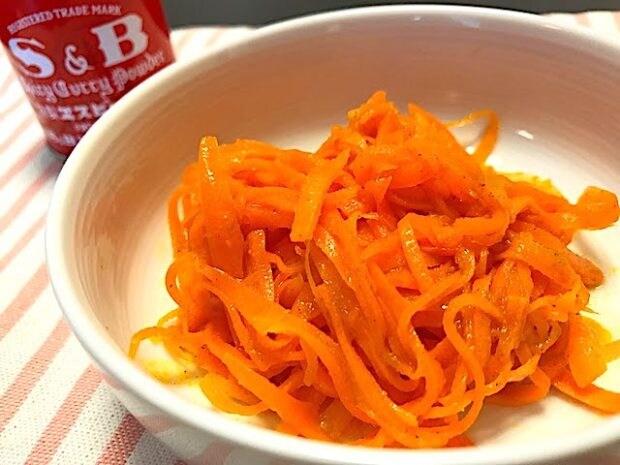 できあがり。スパイシーでエスニックな香りがします。にんじんとカレー粉はもちろん相性も抜群で、ご飯のおかずにぴったりな一皿になりました。