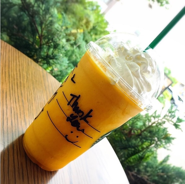 オーダーは、「マンゴーパッションフラペチーノのパッション抜き、ホワイトモカ追加、ホイップ追加してください」とお店で伝えてみて下さい♪ ホイップはお好みですが、店員さんによると追加した方がより濃厚になるそうですよ。