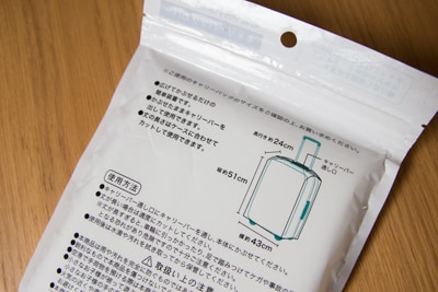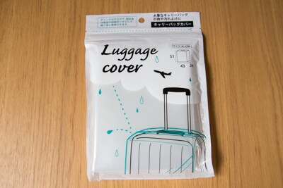 梅雨の時期に旅行をするなら、キャンドゥの「キャリーバッグカバー」を持参しましょう。広げてかぶせるだけで、大事なキャリーバッグを雨から守ります。