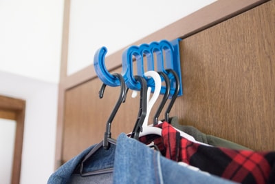 こちらはドアなどの隙間に挟めて使う便利グッズ。ハンガーを5本までかけることができますが、衣類が密着しすぎて乾きが悪くなるため、3~4本くらいで使うのがオススメです。