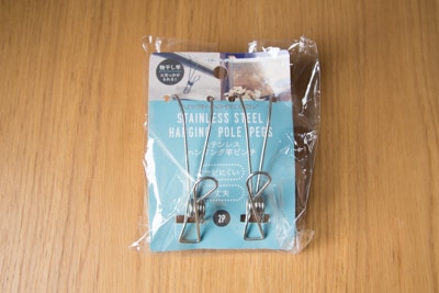 そして、こちらはハンガーではありませんが、ちょっとおしゃれなステンレス製の「ハンギング 竿ピンチ」。キャンドゥで購入することができます。