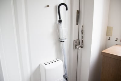 強力なマグネットが付いた壁に貼り付けるタイプの傘たて。こちらの商品は2段に分かれており、どのような長さの傘でも使えるのがポイントです。金属製の扉に使うことができ、スペースを有効活用できるので、玄関の傘置き場が不要になる優れものです。