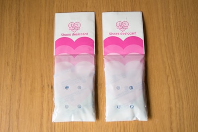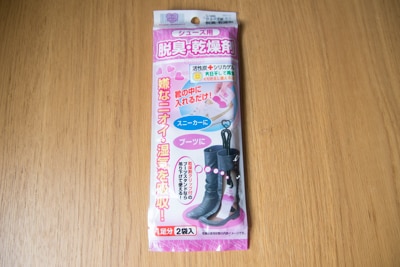 こちらはキャンドゥの「シューズ用 脱臭・乾燥剤」。濡れた靴をそのまま放置するとニオイ菌が繁殖するため、乾燥剤を使って定期的にメンテナンスするのが良いそうです。