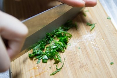 1 )まずはバジルの歯を細かくみじん切りにします。