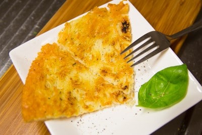 カリカリとした食感で、ほどよいチーズの塩加減もたまりません! 中の麺は適度に油を吸っており、しっとりしていながら、もちっとした食感に仕上がっています。後味にフワッとしたバジルの風味を感じ、一度食べると病みつきになる一品です!