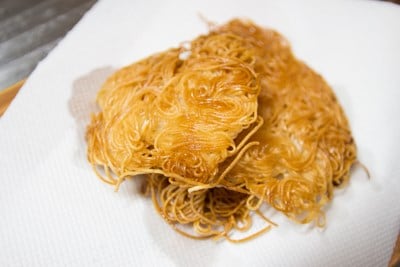 3 )両面きつね色になったらキッチンペーパーの上に取り出しましょう。たったこれだけで完成です!