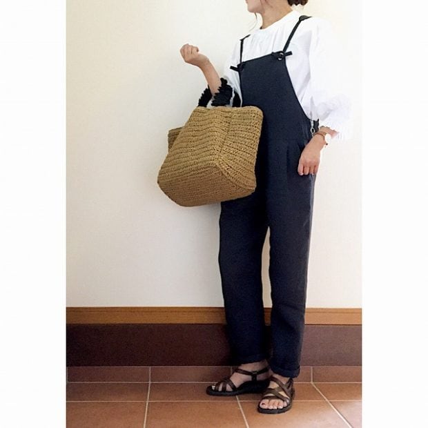 オールインワンと合わせるとかなり雰囲気が変わりますね。幼くなりがちなコーデですが、小物や足元をワントーンで揃えることで、大人の余裕があるコーデに!