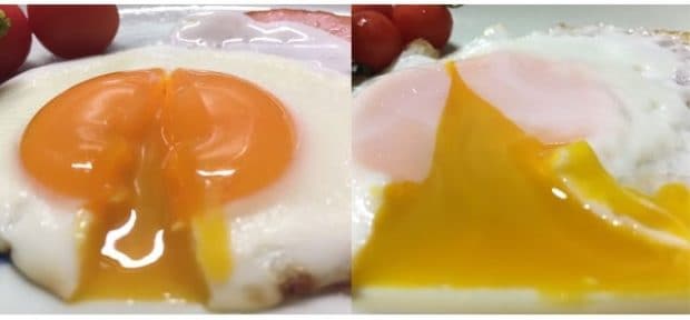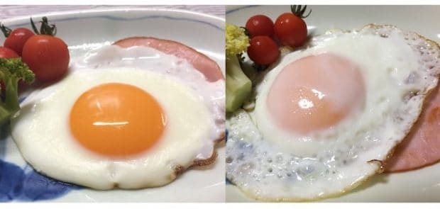 こちらも比べるとさらに違いがわかりますね。「極上の目玉焼き」は肉厚でとてもおいしそうですが、普段通りの目玉焼きはべチャッとしていてイマイチな見た目です。